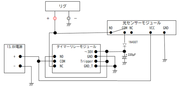 ※ 光モジュールは、正確には「暗ければリレーON、明るければOFF」の動作をします。