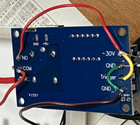 (5) 5秒後、タイマーリレーモジュールのリレーが再度OFFになり、無線機の電源が入ります。また、同時にNOから〜30V
