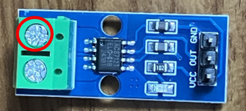 こんな感じにリード線を付け電流センサーのOUT端子に接続します。