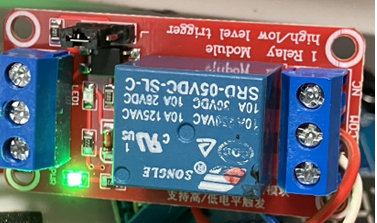 リレーモジュールは、NOとCOM端子を使います。ジャンパーピンは触りません。